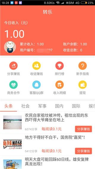 转乐app是一款资讯的阅读赚钱应用,用户只需要通过每日的资讯文章的阅读与转发,即可获取的收益奖励,看的越多转的越多,赚取的收益也就越多哦,感兴趣的朋友可以来下载试试。