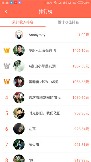 4、提供用户的收入排行榜单获取更多激励。
