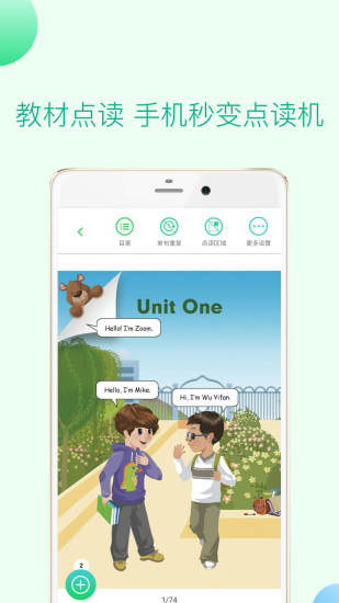 手机秒变课本点读机,复读、连读、评测,即点即读,简单易学。