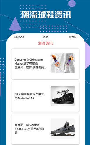 这是一款潮流球鞋资讯平台应用,为喜爱球鞋的你提供了一个更好的球鞋的资讯平台,轻松的了解到更多的新品信息,发售信息。需要的朋友可以来下载使用。