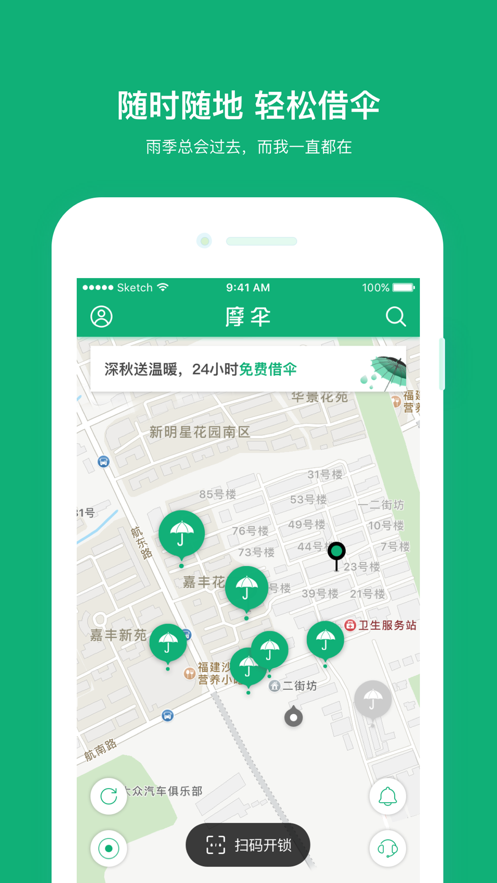摩伞app是一款全新打造的共享雨伞的应用。海量的雨伞覆盖,为您有效的解决了出行忘带伞的尴尬问题。轻松的随时随地的进行租借哦。需要的朋友欢迎来下载使用吧。
