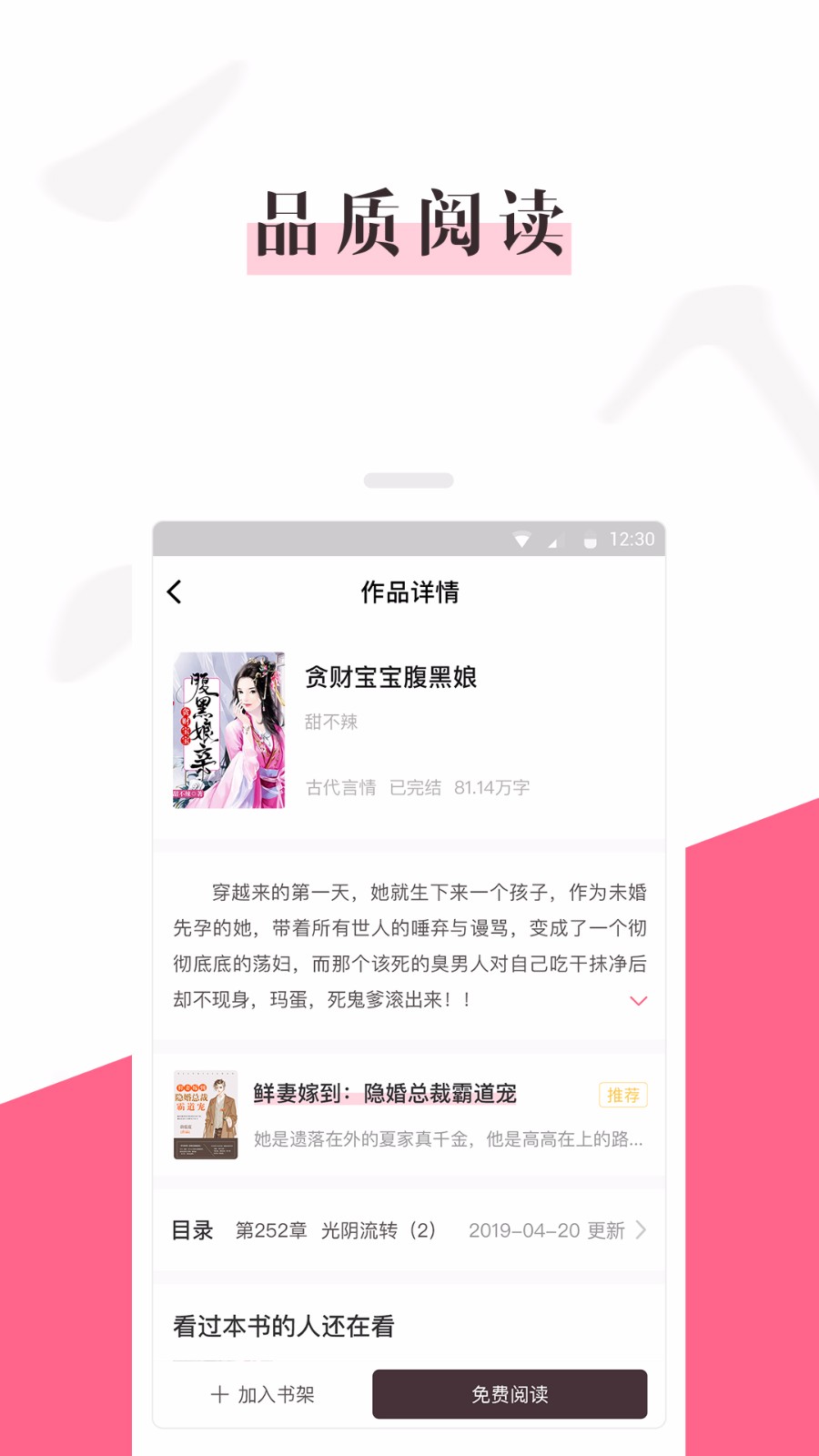 这是一款小说阅读的必备应用。众多的优质小说作品内容汇聚。多样的题材类型内容都有所覆盖哦,为您提供了更多的阅读的选择哦,喜欢的朋友那就快来下载使用吧。