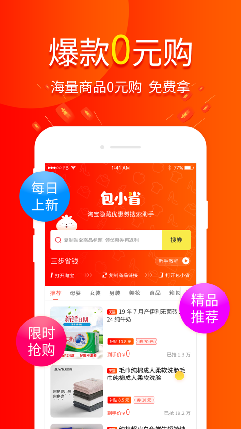 苹果下载 安卓下载 大小:13.52MB 下载:144次 包小省 交易购物 支 持:安卓 分 类:应用软件 大 小:13.52MB 版 本:1.6.3 下载量:144次 发 布:2022-10-15 16:15:05 苹果版下载 安卓下载 #包小省截图 #包小省简介 包小省app是一款专注于省钱网购的应用。众多的大额的优惠券,用户可以轻松的进行搜索领取,使用优惠券的抵扣轻松实惠购物哦,需要的朋友欢迎来下载使用吧。包小省app特点:1、使用关键字或是复制商品标题快速搜券;2、多样的折扣优惠品质好物实惠价格轻松买;2、爆款商品零元拿更多的趣味购物体验哦;4、完成商品的购物还可获得补贴的奖励。包小省app介绍:这是一款专注返利,优惠券,折扣,省钱的优惠券APP,汇集了上万张内部隐藏优惠卷。先领优惠券再购物,下单后还能获得补贴,劲享省钱新方式。