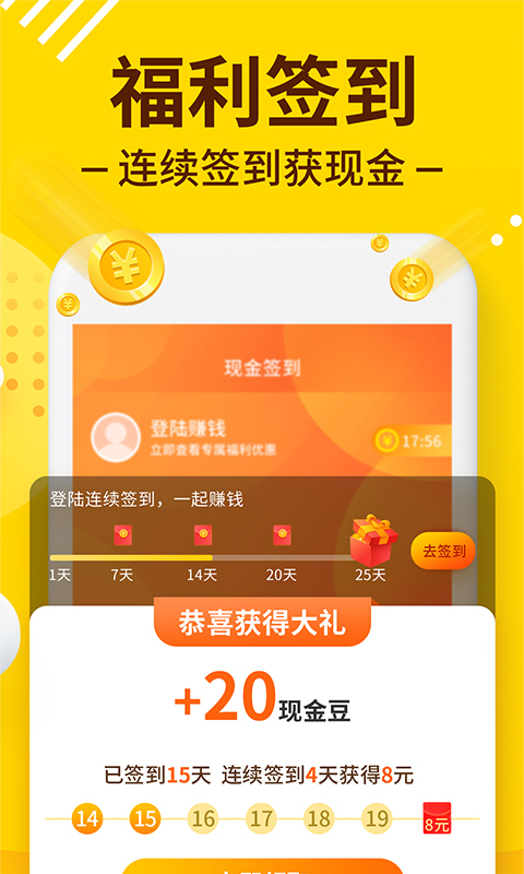 4、通过完成闹钟以及每日的签到领取金豆的奖励。