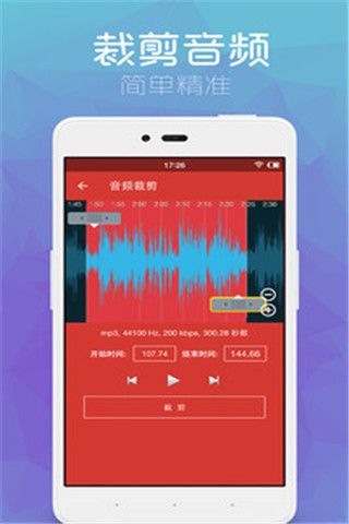 1、音乐可以自由的剪切,并提取所需要的音频;