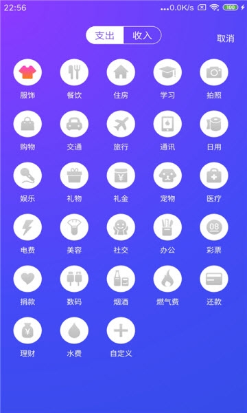 2、提供了丰富的记账的使用场景轻松按类进行记账;