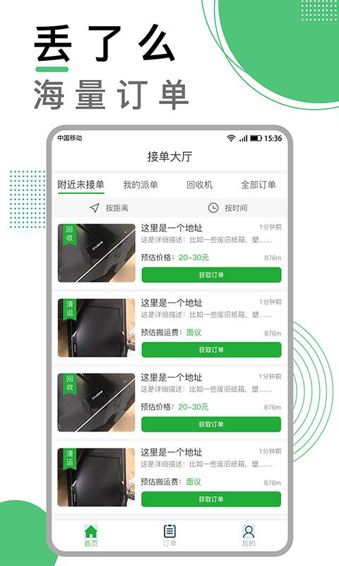 丢了么商家版app专为二手商品回收的商家打造的应用。轻松的获取到更多的订单的任务,海量的货源接不停。提供个人的区域货源保障,获取到更多的的商品的回收哦,赚取更多的收益,欢迎来下载使用吧。