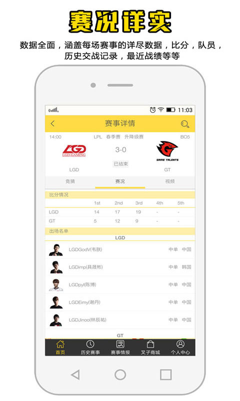 3、提供全面赛事比分数据各电竞战队信息等;