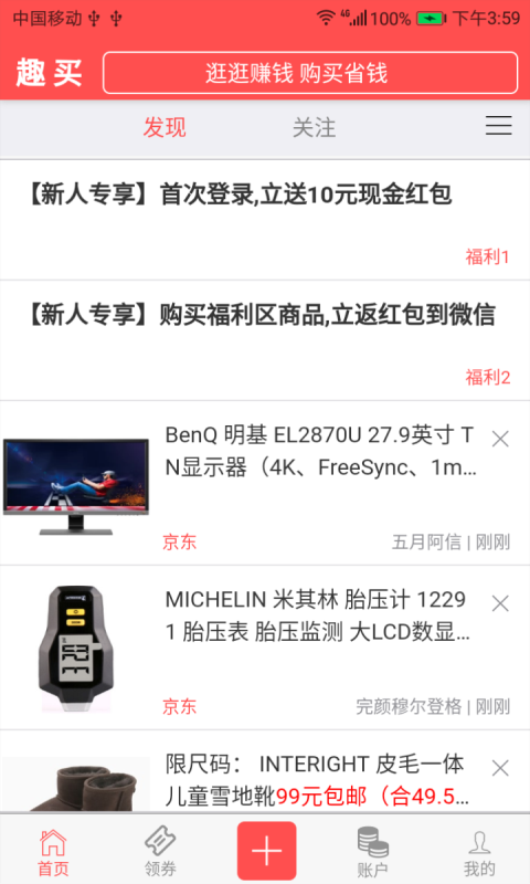 趣买app为您提供省心又省钱的购物体验,购物前可以先进行优惠券的搜索,找到大额的优惠券之后即可抵扣使用,轻松的进行购买。分享商品购物还可以轻松赚哦。喜欢购物的朋友可以来下载使用。