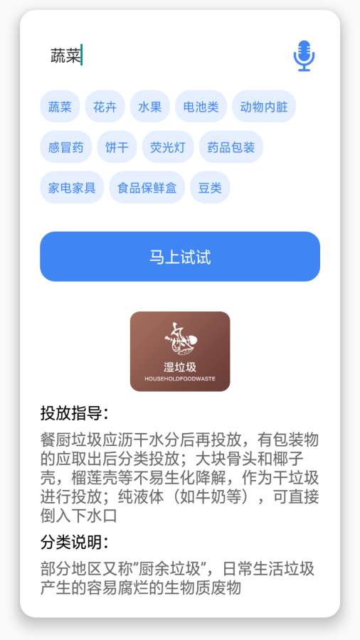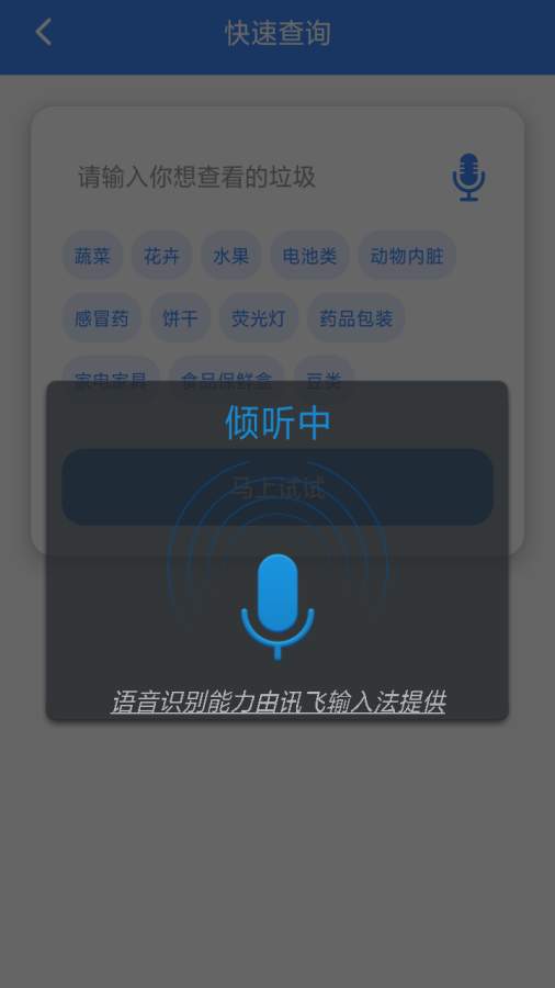 2、多种方式的垃圾查询支持拍照识别语音识别或是输入搜索;