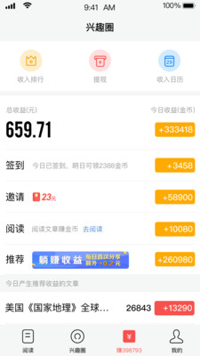 这是一款不错的资讯阅读分享平台应用。轻松的在此找寻到你感兴趣的资讯文章内容,可以与好友进行内容的分享从而赚取到收益的奖励哦。觉得不错的话就来下载使用吧。