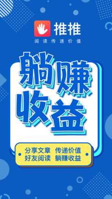 推推互动阅读app是一款互动社交阅读的应用。可以通过社交阅读分享的方式进行收益赚取。精准的为您进行资讯内容的分享推荐阅读。获取到更为优质的阅读的体验哦。喜欢的朋友那就快来下载使用吧。