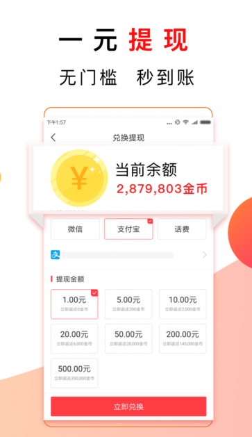 这是一款不错的资讯阅读赚收益应用。丰富的新闻频道内容,用户可以个性化的进行订阅,打造你的专属资讯阅读,阅读或金币,轻松的进行兑现,满一元即可提现。
