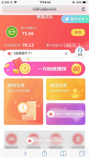 懒猫试玩app是一款通过试玩各类游戏或是应用即可以轻松的赚钱的工具应用。为用户提供了丰富的试玩的项目任务,在平台中各类试玩的内容会不断的更新,可以轻松的自行选择完成哦,从而赚取到收益。