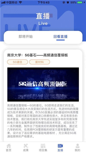 2、直播内容为您带来最新的科技项目的研讨分享实况;