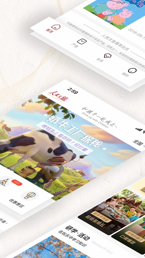人民文旅APP是人民日报社旗下,国内领先的会员制亲子研学活动体验平台,致力于为3-12岁的城市亲子家庭提供优质线上、线下研学旅行,课程体验活动,以优质的服务和内容为亲子家庭提供全方位服务,包括高端定制研学课程、百万宝妈热评好物、热门景区门票优惠、线上优秀音频视频课程和故宫博物院联手打造的故宫文具五大板块。