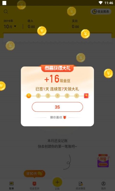 4、通过每日的记账以及签到可以获取到奖励收益。
