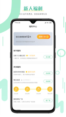 c、新人的阅读福利通过小说阅读还可以赚金币换收益。