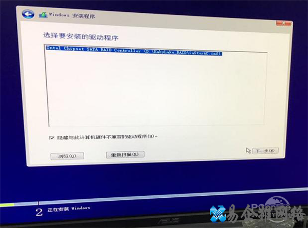 2)进入系统安装界面,如果系统版本太低,请手动加载RAID驱动(新版本Windows 10可以直接识别)