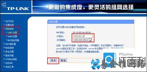 8、依次展开网络参数→LAN设置,将IP地址设置为172.16.1.1,子网掩码设置为255.255.255.0,最后点击确定按钮重启路由器。