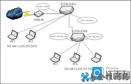 当一台路由器在所提供的接口数量上无法满足局域网内所有计算机在数量的要求时,通常的做法是增加一个路由器,实现网络的扩展。对此,必须合理的使用组网技术。下面小编就与大家共同讨论一下两台路由器的连接和设置方法。