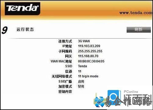 上图可以看出.3G网络已配置成功,路由器已经获取到公网IP地址.此时您的电脑就可以通过网线或者无线连接到Tenda 3G611R路由器上实现共享上网了。