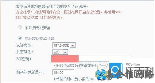 然后再给信号加密,控制面板->无线设置->无线安全设置。为保障网络安全,强烈推荐开启安全设置,并使用WPA-PSK/WPA2-PSK AES加密方法,设置一个比较复杂的密码,建议采用数字+字母的组合,提高破解wifi的难度。