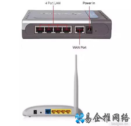 路由器的外形及端口(有线路由器和无线路由器),如下图: