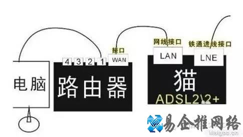 路由器和猫怎么连接,网络人总结路由器和猫怎么连接四个步骤,网络人总结的路由器和猫怎么连接从连线到路由器设置,两个方面四个步骤即解决路由器和猫怎么连接问题。
