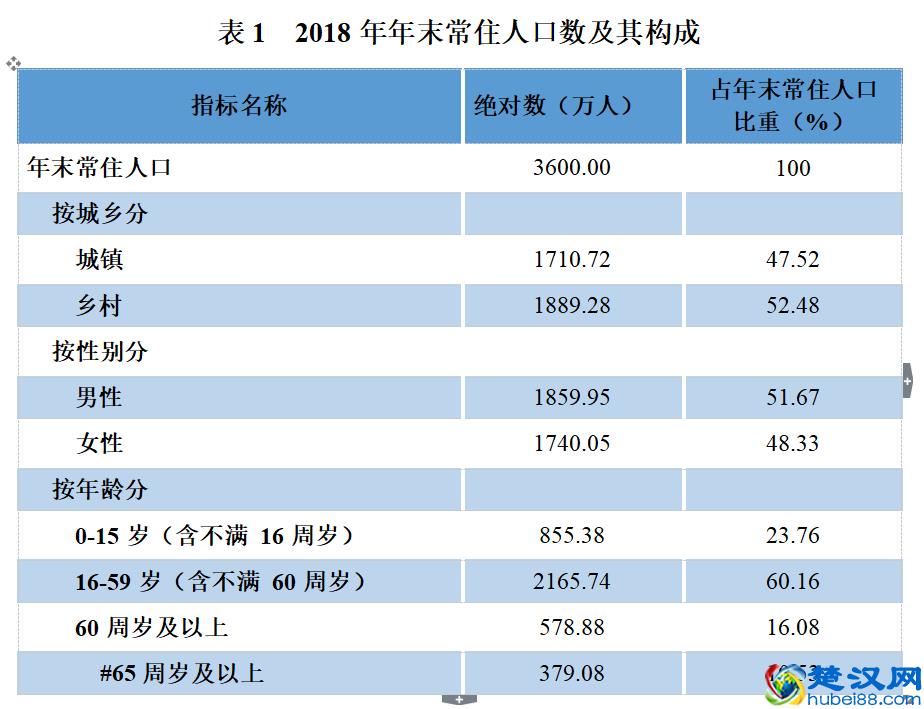 年末常住人口3600.00万人,比上年末增加20.00万人。其中城镇常住人口1710.72万人,占年末常住人口的比重(常住人口城镇化率)为47.52%,比上年末提高1.50个百分点。男女性别比(以女性为100)为106.89。全年出生人口49.90万人,出生率为13.90‰;死亡人口24.59万人,死亡率为6.85‰;自然增长率为7.05‰。