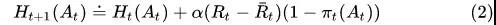 6.基于该轮投放结果的表现中每个内容的表现,我们可以使用梯度赌博机 Gradient Bandits 的模型算法,计算出后验的内容-人群相关度,基于以下的梯度公式更新;