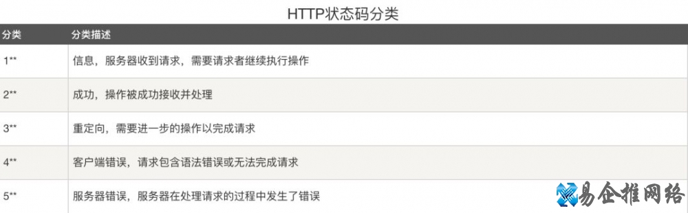 响应报文中我们重点关注下:服务器的响应状态码,面试也很容易问到,下面猪哥只列出分类,详细状态码自行上网查找了解。