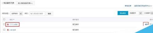 4、添加解析,选择域名,进入解析设置页面,点击【添加解析】,