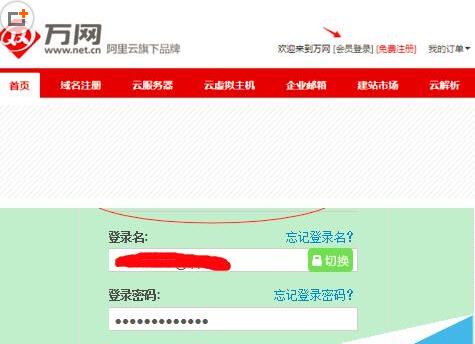 1、去万网官方网站,登陆你购买域名的账号,不知道的可以百度“万网”,认准带有官网字样的网站
