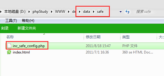 登录FTP或者本地织梦测试文件,打开date文件下的safe文件,然后打开inc_safe_config.php文件。