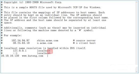 现在去浏览器访问地址:www,kuteng,com,访问之前必须关闭Linux服务器的iptables。需要修改Windows上的hosts文件C:\Windows\System32\drivers\etc