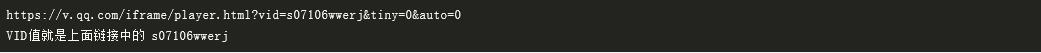 在这里要注意上面图示中红色框中的VID值,VID值要在腾讯视频的播放页中进行手动提取的。