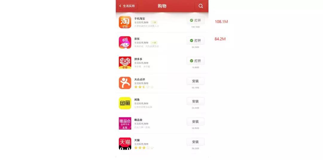 在这里,我不是说功能必须是一个,而是说应用的页面关系不要太复杂。不要有太多webview的东西在里面,这样体验感觉不是很舒服的。例如京东小程序,基本上包含了APP的基础功能,使用体验稍微逊色一些。这也就是我为什么要说京东、淘宝是轻量级应用的原因。但是购物小程序一般调优都特别的好,所以对于频次不高,只是偶尔买买或者推荐购买的用户来讲,小程序这么做是非常值得推荐的。