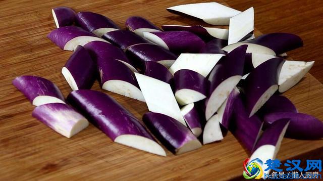 洗净茄子表皮,切掉茄子蒂,将茄子切成小块。