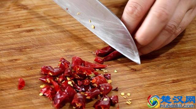 大蒜切末,小葱切成葱末,红干辣椒切小段备用。